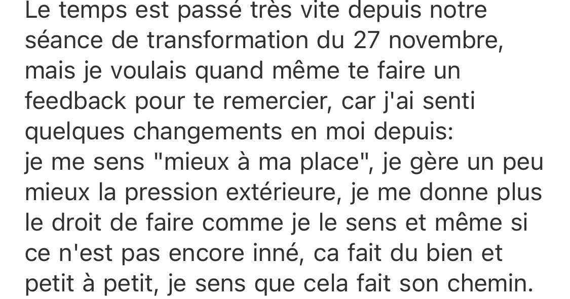 Voici ce qu'ils disent de mes séances transformation